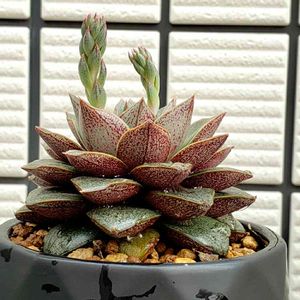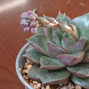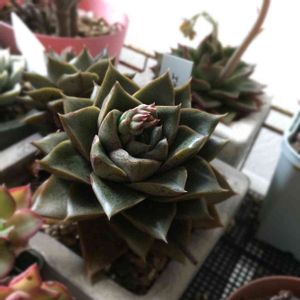 見た目の可愛さで買ってしまったけど、この子は何ちゃんなんだろう😅💦 みんなの写真で見た感じでは、大和錦っていうのに似ている気もするけど... 育ち方で見た目も変わっちゃうし、それが多肉って難しい💔 そして、花芽が💦 株を大きくするためには、取ったほうがいいのか悩む💦💦💦