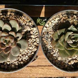 親子ですねー✨ えっ親子でいいですよね? 左がお子ちゃまのアメトルム 右が親の大和錦 であってるといいんですけど(笑) なんとなく色合いが似てるかな?なんて⤴️ えーともう一人の親はうちにはいないのでいつかお迎えできたらなぁなんて😌💓 えっとアメトルムの葉っぱの穴は四男がキリで突き刺したものです😢 何されるかわからないですホントに…
