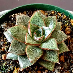 大和錦さん うちの数少ないエケベリア 陶器のような艶々のお肌がほんのり紅葉