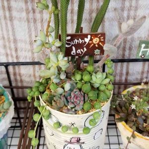 キノピーちゃんから素敵便❤️❤️❤️ 素敵な子たちいっぱい(❁︎´ω`❁︎)*✲゚︎* 届きました〜❤️❤️❤️❤️ かわいい💕💕寄せ植えと、 鉢はキノピーちゃんのお手製かな❓ いいお色のセンペルさん💕と ルビネさん💕💕💕 あと、桜吹雪❓❓ どれもかわいいよ〜💕💕💕💕💕 ルビネと桜吹雪はIzumiさんの リメ鉢とリメ缶、 センペルはみんとぐりーんさんの リメ缶にイン❣️❣️ させてもらいました〜♡︎〜 (●︎′艸'●︎) 〜♡︎ 美味しそうな梅ごまもありがとう❤️❤️ キノピーちゃん、ありがとう❣️❣️ 私がなんと‼️自分ちの郵便番号を 間違えたがために長旅に なっちゃったー( ᵒ̴̶̷̥́ _ᵒ̴̶̷̣̥̀ ) 寄せ植えはちょっと崩れちゃって いたので、自己流で 植え直しちゃいました。 ほんと❣️ありがとう❣️❣️ 大切に育てるねー(✿︎´ ꒳ ` )♡︎