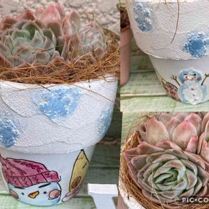 おはようございます🙆 寄せ植えしてあったけど、スカスカになってたコたちを寄せ植えし直しました〜( *¯ ³¯*)☝️ これは、Izumiサンの可愛い冬バ-ジョンのリメ缶・・・去年購入しました。 グリ-ンネックレスを入れたりしました😁 朝晩は寒くなりました💦 風邪引かないようにしましょうね❤ 今日もsmile٩(ˊᗜˋ*)و忘れずに❤️❤️