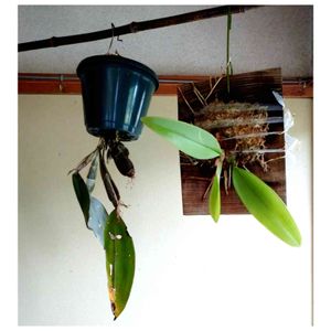 植欲の秋、洋ランを買いました. 右、サイコプシス マリポサ(トリラベロ) 矮性種の三蝶咲き 左、デンドロビウム イプシロン 葉が厚くて緑色が濃い.鉢底から出てるの初めて見ました. 私の知ってるイプシロンはバルブも花も黄緑ですが、こちらバルブが赤みがかっています.とてもワイルド💘