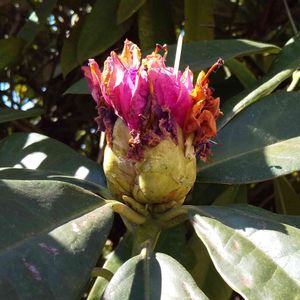 早とちりしたシャクナゲ 石楠花 ツツジ科ツツジ属 常緑低木 ちょっと暖かかったので思わず開いてしまった😵💧でもヤッパリ寒かった❗️