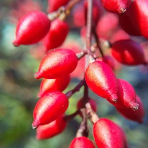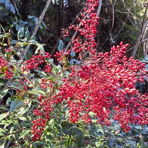 ナンテン 南天 メギ科メギ属 低木 実を拡大しました。丸ではありません❗️鳥も薬師如来に遠慮して食べない? 野津田薬師堂境内にて