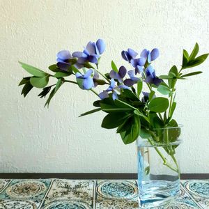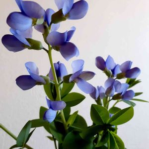 先週上げ損ねたお花を… 国立越後丘陵公園で満開の大株を見て虜になった青花のセンダイハギ。 小さな苗を庭に植えたのですが、昨年は咲かずじまい。今年はシュートが10本に増えましたが、咲いたのは僅か、小さな花穂がたった2本。 でもこの色には感激です💙 花もちも良くて切り花に最適! 屋内で見ると一層色が美しく映えます✨ 来年に期待♪
