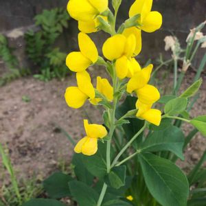 散歩道で見つけたこの黄色い花🌼 花壇に植えてあってとってもカワイイ🤗 マメ科の花だということはわかるのだけど名前が分からない(T ^ T) 「君の名は」