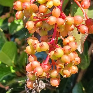 おはようございます😃 年々、高温や大雨のレベルが酷くなっているようです。 暦の上では陽気が変わる頃、しかし、暑い日が続きます。 高齢者で剣道を趣味にしている者にとってこの暑さは辛いです。 家ではエアコンのスイッチを入れっぱなしです。 エアコンの中でカビなどが繁殖して、空気が汚染されているのではないかと心配になります。🤔 近くの小さな果樹園、道端のサンゴジユの赤い実が美しくなりました。 名前の由来、赤サンゴ玉とよく似た実です。 玉を繋ぐ柄の部分も赤くなって、濃い緑色の葉っぱとの対比が素敵です。 昔は生垣が多くて、サンゴジユやカナメモチの垣根がたくさんありました。 今、住宅街は家の前は駐車スペースになりました。 そのせいで、町中で緑の生垣を見ることが少なくなりました。😅