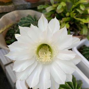 10個のサボテンがあり、今年63本目のお花が咲きました✨ 去年は9個のサボテンから47本だったようなので、たぶん1個はお花デビューですね🙌デビューの子は、1本しか咲いてない気がする。デビューイヤーはそんなもんでしょうか? それにしても、今年はすごいな〜😊まだもう少し咲きそうですよ。