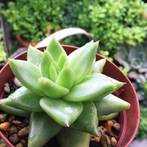 身長伸びました‼️💕👏あんみつ姫。てっきりグラプトかと思っていたがエケベリア属😱葉っぱよくよく見るとあずき色がお気に入り👀餡子の香りは致しません😆