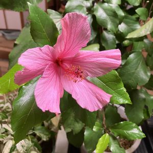 ハイビスカス ピンク アーノッティアヌス🎵 ハワイ産系の原種だそうです。🌺 とりあえず6号鉢に植え付けて 夏くらいに鉢増しをするそうです。(店員さんご教授)👌😉