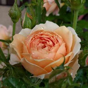 今朝のバラさん🌹 杏 涼しいせいかカップ咲き😊
