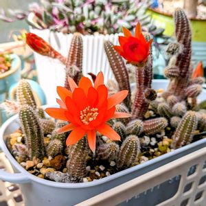 ᰔᩚ ᥫᩣ サボテン🌵今日のお花 ①昨年5月に咲いた時の白檀 ②只今 紅葉中🍁 ③ミニサボテン ダイソーサボテン 4年目にしてやっとこの大きさ