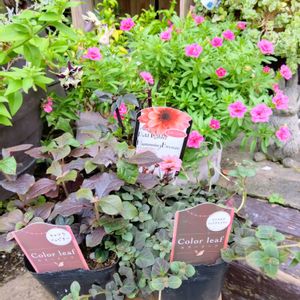 こんにちは😊 今日の午後から台風の影響で雨予報だったので、午前中に買い物をすませようと行って来ました。 そこで出会いがありました😁 ①②スーパーの中のお花屋さんで破格の銅葉リーフに出会えました🍂🌿 リシマキア ミッドナイトサン キャツラ ジュピター プチダリア ハミングブロンズ エターニティ(こちらは見切り品なので早く植えた方が良さそうです😅) 八重咲きカリブラコア オロダブル マジェンタ🩷 一度カット✂していますが、お花の数が少ないです。液肥をあげるといつも枯らしてしまうので怖くてあげないからでしょうね😅 ③寄植えにしていたリーフだけ残された鉢に挿し芽したり、お安い夏のお花を植えているエリアです🌿 まだ先になりそうですが、秋のお花にチェンジしていきたいと思います🤗💕 恵みの雨☔で嬉しいですが、どちらも被害がでませんように🙏