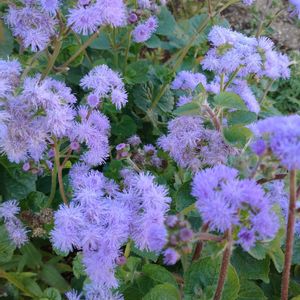 1 毎年、勝手に咲いてるアゲラタム達💜 2 園芸品種のノコンギクは、増えに増えて、周囲にもいっぱい…😅 3 まだまだ頑張ってるカリブラコア💜