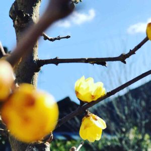 やっと咲いた我が家の蝋梅❣️ ポカポカ小春日和にぴったりです😍