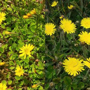 左右どちらもたんぽぽに似てるけど、たんぽぽではない…🤔 →は、ウォーキングで道端に咲いていました。ブタナ❔ノゲシ❔ ←は藤を見に行った庭園に咲いてました。 教えてください🙇 ジシバリと、ブタナと教えて頂きました😃