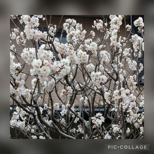 今年もさくらんぼ🍒の花が咲きました🌸 木が大きくなったので少し切り戻したので花は少なめ さくらんぼも少ないのかな〜