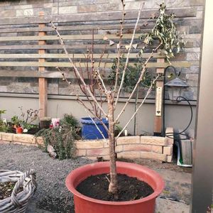 satoshiさんからもアドバイスいただいたように、さくらんぼの苗を数日前に、大きな鉢に植え替えました😅