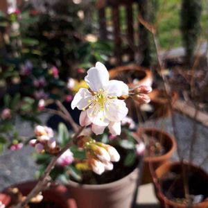 さくらんぼの花が1輪咲きました~🍒 ほんのりぴんくです♡