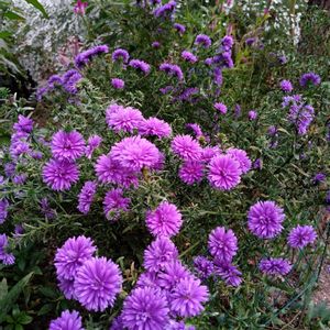 *。丈夫で可愛い八重咲き宿根アスター。* シュッコンアスター 'ミステリーレディー'です! タンポポのようなポンポンとしたボリュームある 八重咲きの花弁が愛らしいアスターです🌸 花色は、ピンク・紫・白などがありますが、 どの色味も可愛らしく見ていて飽きません♪ 夏から秋にかけて花が咲き、花持ちが良く、 比較的暑さにも寒さにも強い丈夫な植物です。* 日当りが良く、風通しの良い場所で育ててください🌞
