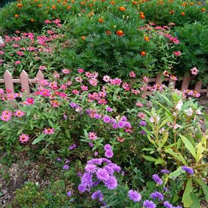こちらも株分けした宿根アスター ミステリーレディ💜 株分けして他に2ヶ所に植えていますが、 増え過ぎの宿根アスターです😊 ここで咲いているのはみんなこぼれ種、種蒔き組のお花ばかりです🤭