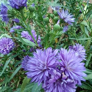 🍀おはようございます🍀 株分けした宿根アスター ミステリーレディ💜 たくさん咲くようになりました🎶 💜色のお花が秋らしいです😊