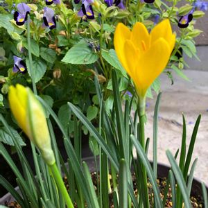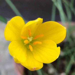 今日のお花 たますだれ 黄花たますだれ ステルンベルギアが、咲きました。💝 可愛いです。😍 曇なので、しっかりは開いていません。🌻 でも、可愛い感じは、分かっていただますか?💖 花は、クロッカスに似ていますが、花びらが少し短いです。 葉は、ニラ位の巾です。
