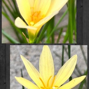 🟡ステルンベルギア🟡 和名:キバナタマスダレ(黄花玉簾) クロッカスに似た黄色い花💠が 可愛いらしいです🥰💓 植物園とご近所の畑のコラージュです🎵 花言葉💐 『期待』『安息』 今日も穏やかな1日になるからな~🤗🎵