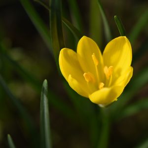 ステルンベルギア(黄花たますだれ)が、咲きはじめました。💕 可愛いお花です。💕🤗 球根のお花です。 お花は、クロッカスに似ています。 花びらの長さが、少しこれの方が短いです。 花びらの厚みも、有ります。 葉は、彼岸花に似ています。 花の上に写っているのが、隣の株の葉です。