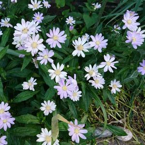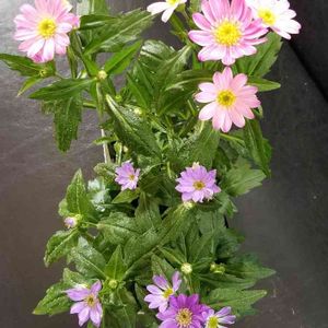 こんにちは。 今日のお花 都忘れ ピンクと薄紫 白い都忘れを、探しています。 それまでポットで、管理ですが、なるだけ早く鉢に植え替えたいですね。