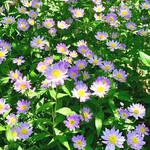 溢れんばかりの『都忘れ(ミヤコワスレ)』の紫の花を、囲むように🍃『錨草(イカリソウ)』の葉っぱ🌿 ✨このコントラストが好き❣️🤗