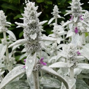🌿道すがら🌿 昨日この辺りではあまり見かけない花を見つけました。 ラムズイヤー、子羊の耳❤と名づけたセンスが素晴らしい♪ 雨が降るのを待って、本日パチリ☆ 満開になったら、また撮らせてね~😉