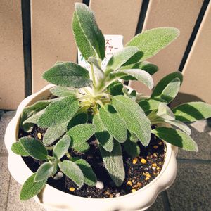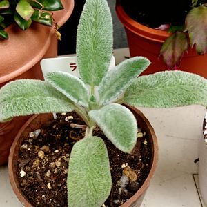 こんにちは☔今日の3枚目☺️ 我が家のラムズイヤー 昨年の11月に見切り品で 家の子になって モリモリになってきたので 植え替えました もっと育ってね モフモフの葉っぱが可愛い🌿