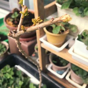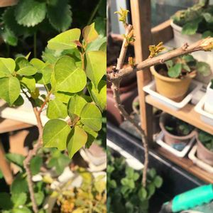 210326 南京はぜでしょうか? 一昨年だいだいの鉢に勝手に種が入っていて、グングン伸びて成長していたのですが、葉っぱが落ちてからパタっと成長が止まり枝も全部ぽとぽと落ちたので、枯れたのかなと思ってました。苺の苗も同棲させていたので、水は与え続けていたら、ほぼ1年ぶりに芽が吹いてきました❗️休眠してたんでしょうか?こんなこともあるんですね。