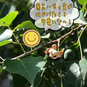 公園の 「南京ハゼ」の実が ついに、はじけました! 可愛いな〜! 公園ウォーキングのお楽しみ〜。
