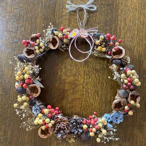 白南天とクルミの実を もらったので お正月向きのリースを作ってみたよ🎍 1年ぶりに水引を出して来て 思い出しながら ちょっと作ってみました^ ^