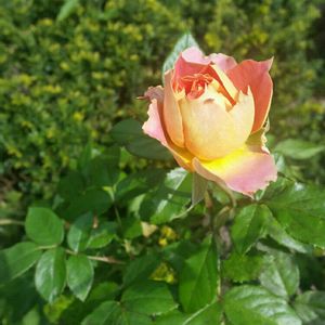 去年植えたばかり。 花弁はややイレギュラー気味ですがオレンジと黄色が眩しいバラです。