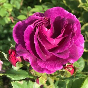 バラNo.40 ヴィオレパルフェメ(ヴィオレパルフュメ) Violette Parfumee フランス 1995年 ドリュ Francois Dorieux II 四季咲き 大輪 強香 丸弁高芯咲き ブッシュ 木立性 フリルがかかった丸弁 グラデーションがかった濃い赤紫色 徐々にピンクがかってくる 育てやすい 耐暑性強 耐寒性強 耐陰性強 各種コンクールで12個のメダルを受賞
