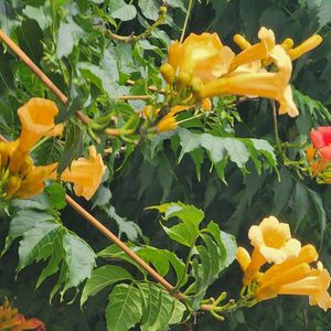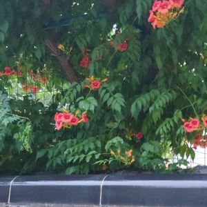通勤途中シリーズ✨172 ノウゼンカズラ💛🧡 大通りにて。もうすぐ終わりかな。