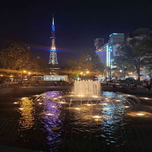 通勤途中シリーズ✨160 ストックより、札幌大通り公園のテレビ塔と噴水⛲ 仕事帰りに地上を通るとみれます。 普段は割りと地下を歩く🚶んですが。。時々お花をみるために通ります😃
