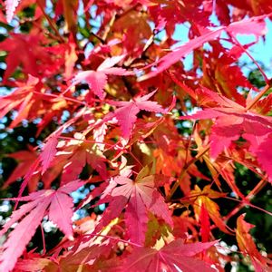 11月15日 今日のお花 🍁🍁 イロハモミジ 🍁🍁 特徴: 日本を代表するカエデの一種で、手のひらのような形の葉を持ちます。 1️⃣紅葉するイロハモミジ 2024.12月撮影 服部緑地都市緑化植物園にて