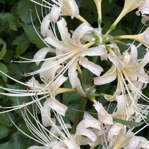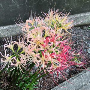 おはようございます😊🌩️🎶🍂 私の散歩道「ヒガンバナ」2・3年前 白色だけやったと思っていたけど 赤色も植って何となくピンクに 見えるように?