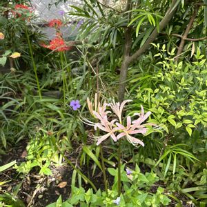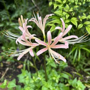 庭からの曼珠沙華 白 今年は赤より先に咲き出しました ⁺⊹˚.⋆⁺⊹˚.⋆🐿️🍀
