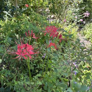 八重の彼岸花が咲いてます 昨年は気づかなかったので 無くなったかと思っていたので また出会えて嬉しいです 一重の彼岸花も凛として咲いてます 実家の庭で雑草の中で秋色紫陽花をみつけました 4ヶ月ぶりの庭は雑草が伸び放題 大きな草とカズラだけどうにか処分しました そんな中での紫陽花は疲れを少しとってくれました😊 叔母の法事のあったお寺の庭 綺麗に手入れされてました 娘の嫁ぎ先のぶどう🍇 もう直ぐぶどう狩りが始まります