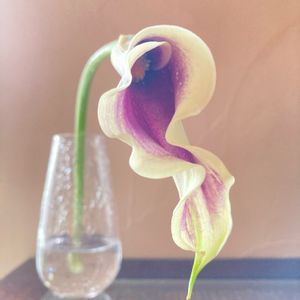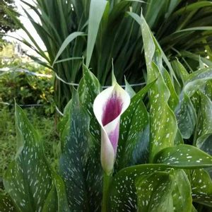 カラー「ピカソ」 球根を買って育てています✨ 白地に紫の2色咲き💓 切り花としても出回っていますね😊