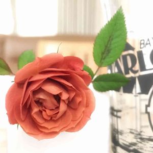 庭で作業していると知らない間にバラの枝に体が当たり折り曲げてしまうことがあり、このテディベアも危うくつぼみをダメにするところでした😱 気が付き水に挿しておいたら花が開きました🧡🧡🎶 外のつぼみはまだ開いていないので外の空気は冷たいのですね🤔 葉山のビーカープリン屋さんの器と🍮
