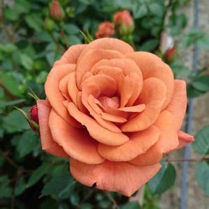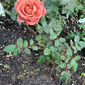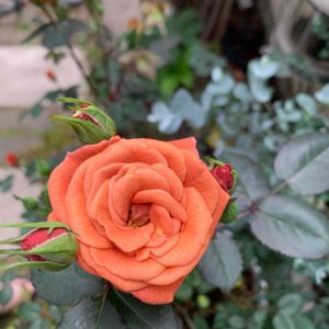 テディベアがうどん粉に負けず、どんどん花開いてます🧡 咲きはじめはレンガ色、その後はピンクっぽい色に変わってきます🧡💕ʕ•ᴥ•ʔ 枝は柔らかで枝垂れる感じ。 お花はミニバラの割にボリュームがあるので全体の姿はふんわり横に広がってきています❣️ ハンギングなんかでも良さそう✨🧡