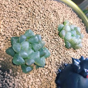 多肉植物専門店に行った際あまりの可愛さにお迎えしたオブツーサちゃんズ。梅雨時もあって外側に外側に出してたけど雨なので少し内側に避難。ぶっくり感が可愛い(〃ω〃)