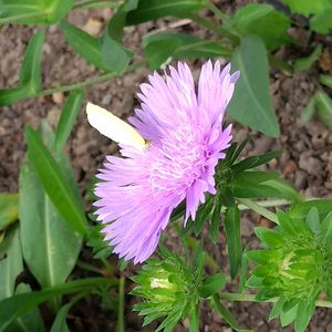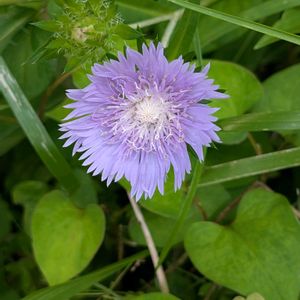 家の周辺の空地に咲いていた。初めて見る。検索するとストケシア。和名がエドムラサキ。紫色が目に優しい。