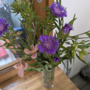 桃色ハート 大分花数が増えてきました🩷🩷🩷 かすみそうとストケシアを飾ってみました🤍💜🤍 桔梗も可愛いく咲いてます💜💜💜